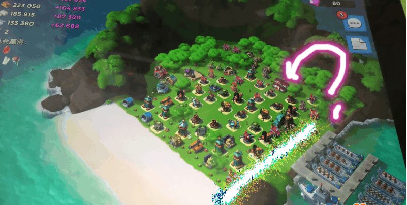 玩法:在海岸的左下或右下然后从左或右依次登陆妹子,然后引导与大本同一水平的的空地(注意不要引导在大本上)随后再登陆火车,给妹子盖烟雾,火车会跟着妹子,然后超过妹子,这个不用管他,到达目的地后,火车会开始乱跑,这时候不用管,妹子到达目的地后会自行输出,如果中途保护得当就不用干啥了