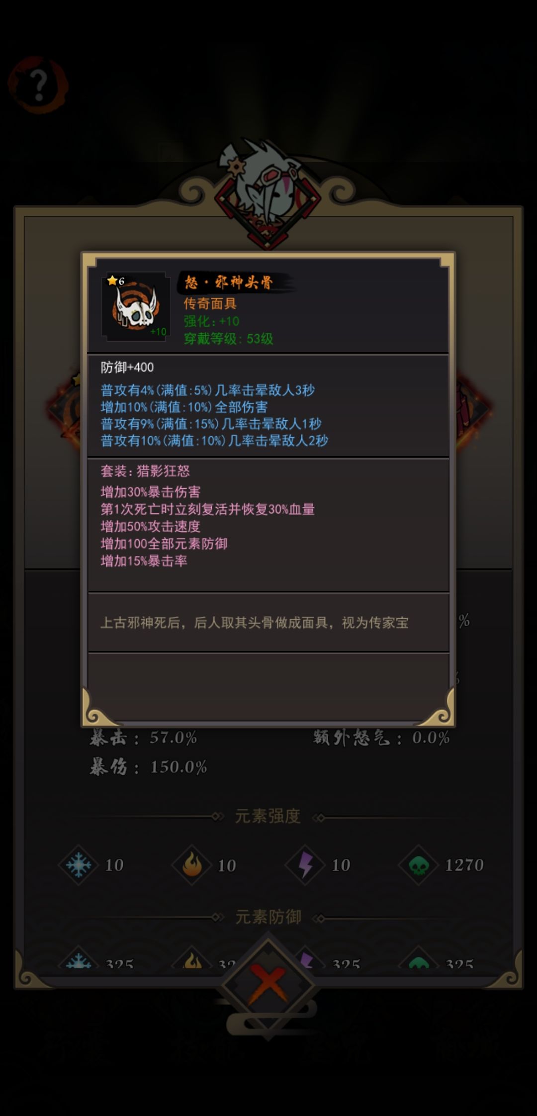 怒套:30%爆伤另你暴击伤害提升,死亡复活和攻速,都是标配100全元素防御,真是踏 马鸡肋15的暴击几率更是让你伤害提升很多,