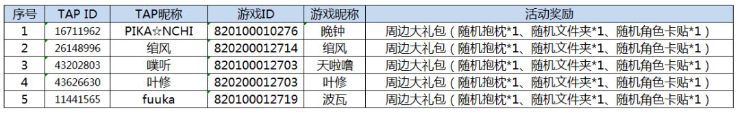 【获奖名单】永测服v1.0 BUG及建议反馈周边奖励名单