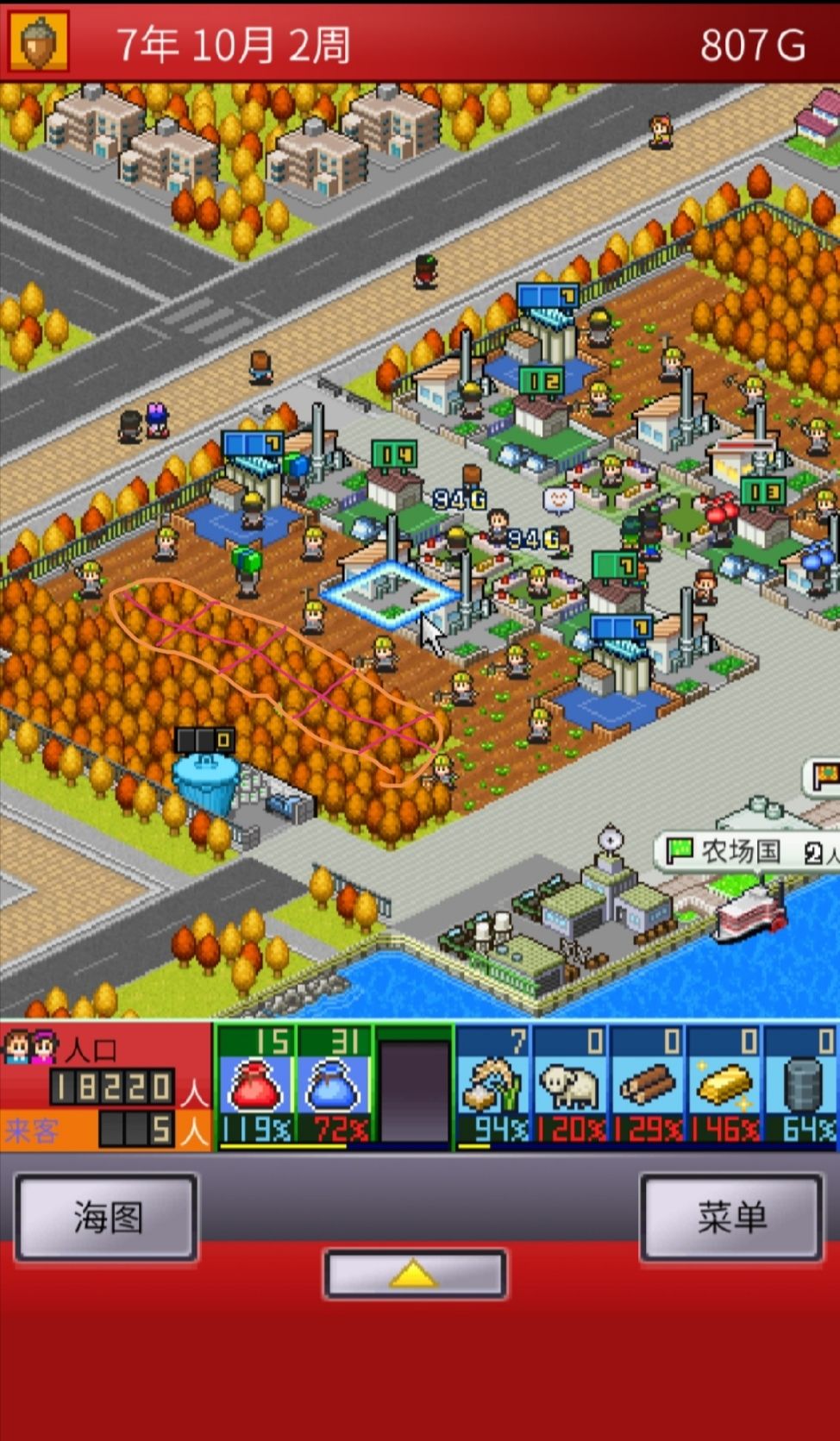 之后攒钱,有一千块就先买俩田和材料厂,接着上一个工厂,然后继续攒钱(大概三四千),攒足够时一次性造完第二条生产线,此时最好是22G+45G。接下来先造旅客中心,接着研究军港,研究期间可以买个旅客船去开40P旅游业。军港建在最下面。打完金枪鱼废弃船,此时农场国的40P应该好了,换草原国刷40P旅游业,再造一个旅客中心。