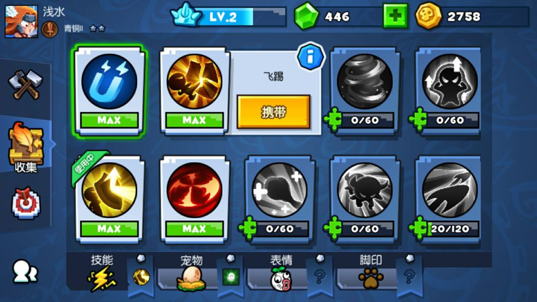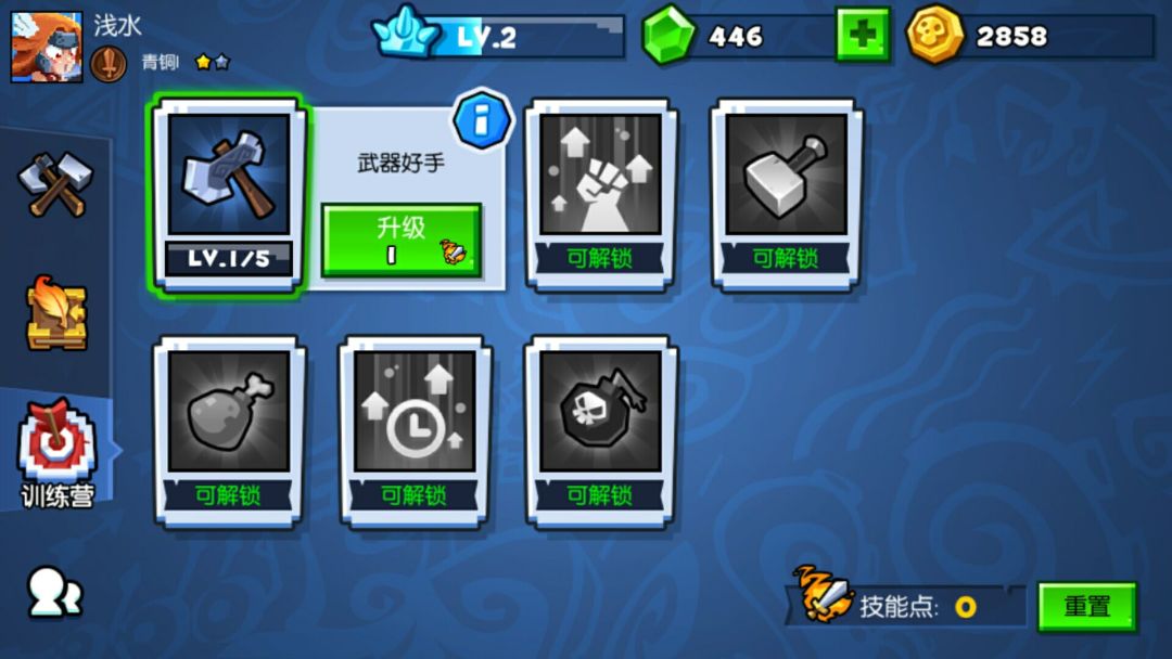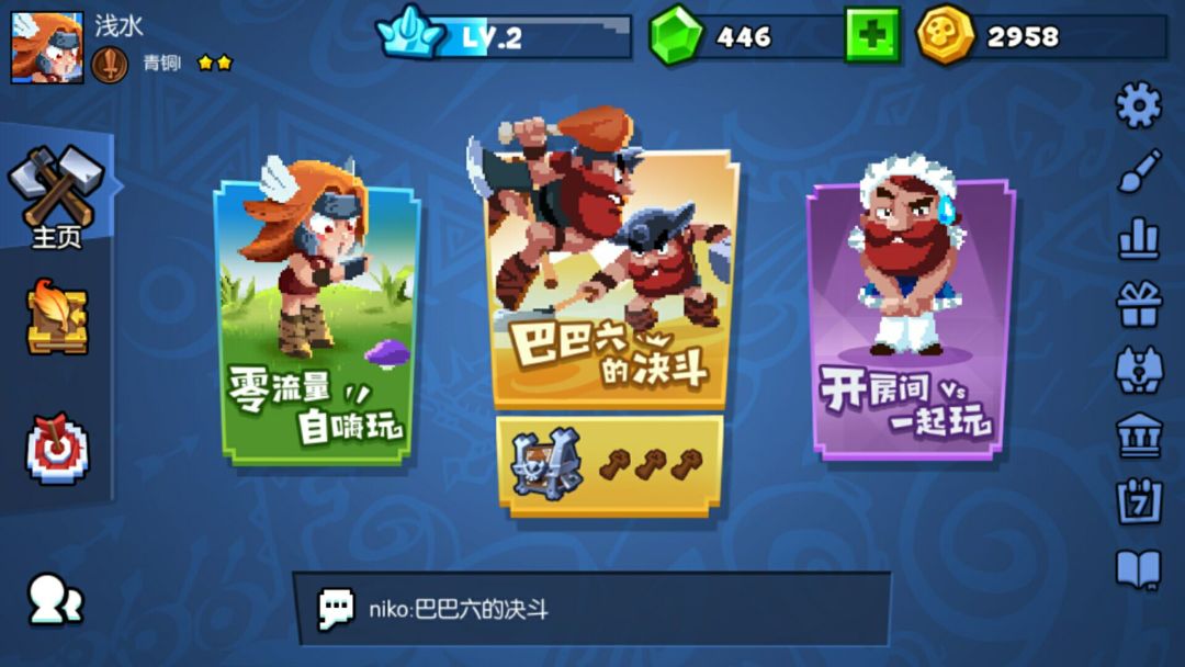 首先《野蛮人大作战》为游戏设计了2个初始角色——巴巴六和瓦瓦莉。巴巴六擅长跳砍,而瓦瓦莉则可以消耗体力往前突进,且在突进的过程中无法被敌方选中。虽然在初上手时感觉两个角色好像都差不多,但游戏时间一长,就能明显感觉出两个角色的操作上的细节差异非常大。