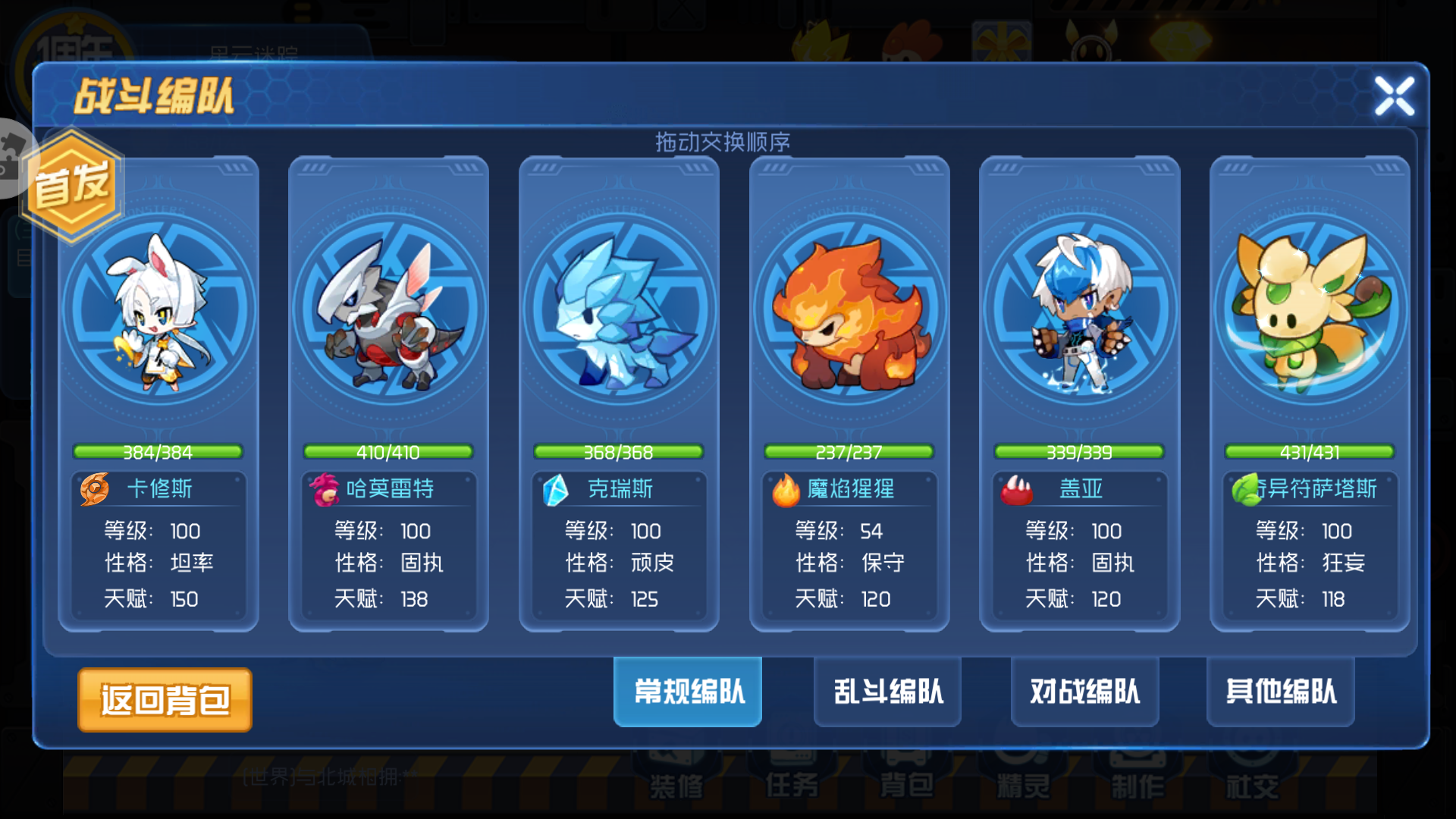 (我可不会告诉你们今早我刚拿到哈莫,刚觉醒魔焰猩猩……)耗招精灵可以多带几只(虽然卡子和冰狮子都没用到……),符萨塔斯是带剧毒孢子,也可以换仙人掌布布花什么的,魔焰猩猩绝命火焰必须带,不然真身第四条命没法打,没有魔焰的也可以用阿克希亚极度冰点,但比较耗PP药,个人不是很推荐,至于盖亚……就是个废物,但最后一条命控血可以用下。