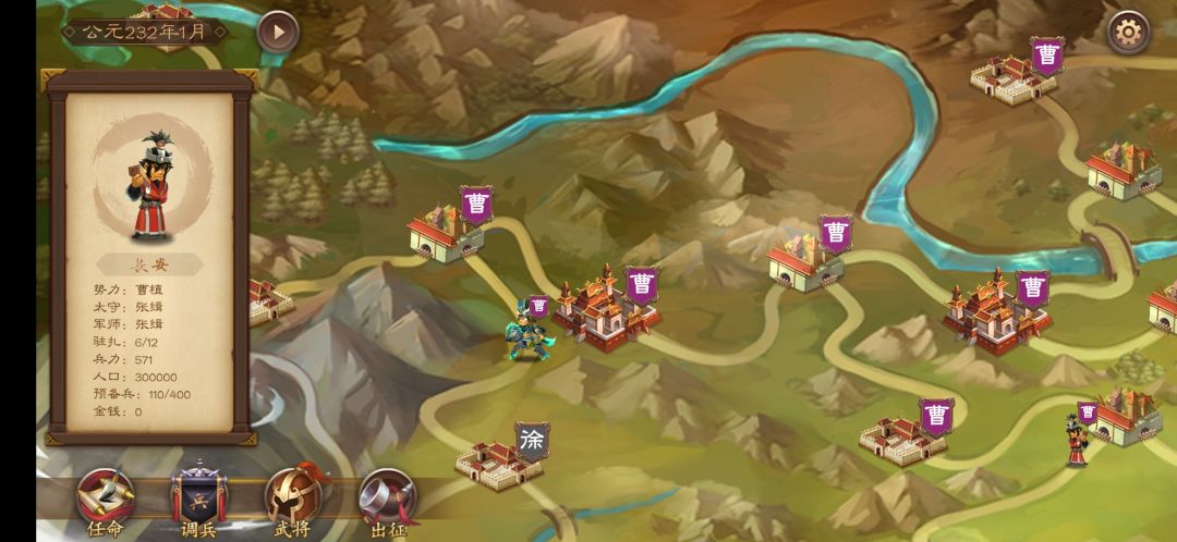 点击任意一个城池回出现 任命 调兵 武将 出征