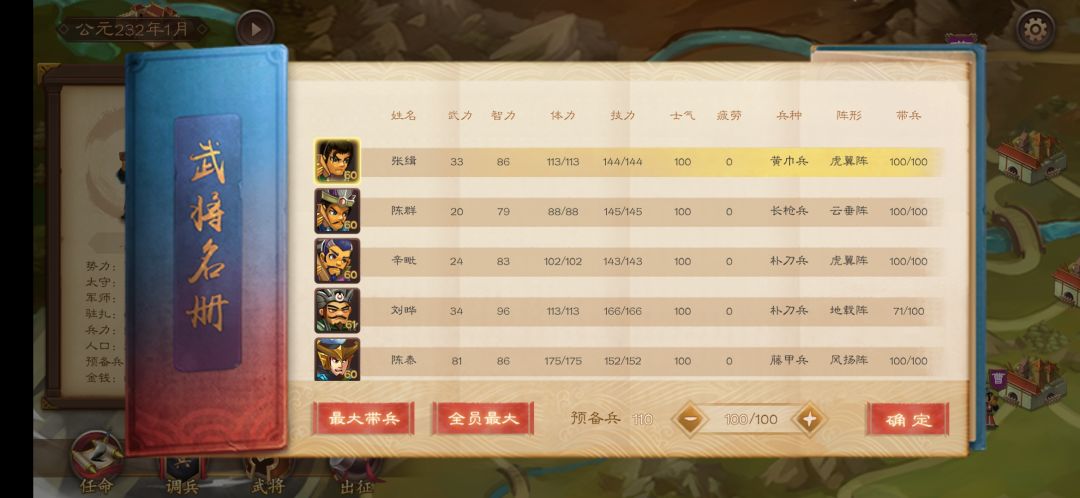 调兵主要负责武将简要信息和兵力安排