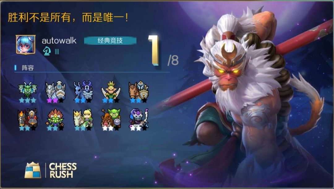 前期是挨打,但尽量减少大出血;中期稳定好4骑士2亡灵1恶魔,然后看手气摸牌。最后终极手气考验就是精灵+猎人那位帅哥能不能组到2星以上,不然只能上生仔蛙。
