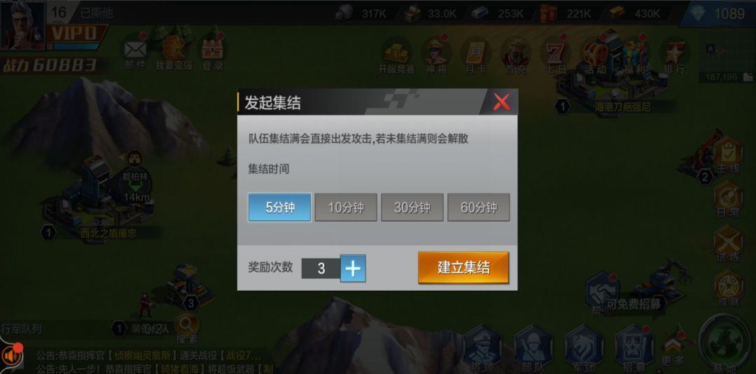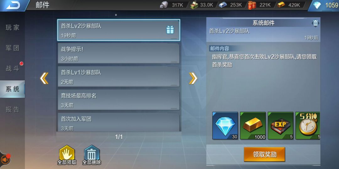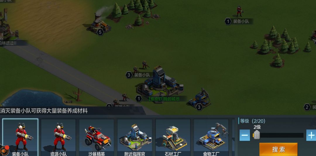 指挥官可派遣部队出征攻打,在战胜沙暴小队后,可获得丰富的城建材料和装备材料。指挥官可以在搜索界面,选择对应沙暴小队等级,随着的等级提高,击败它们后指挥官获得的奖励越丰厚。