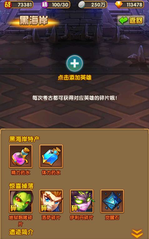 大家记得想要碎片,来挂机考古哦!首次通关还有大量钻石!这里可是可以挂机获得英雄碎片噢~!!还有稀有材料呢。