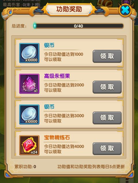 在围剿群魔中挑战BOSS时造成的伤害时会获取到功勋。每日功勋都有奖励可以获取哦。每日可是有40个奖励哦!非常丰富,大家可要尽力的提高伤害啊!