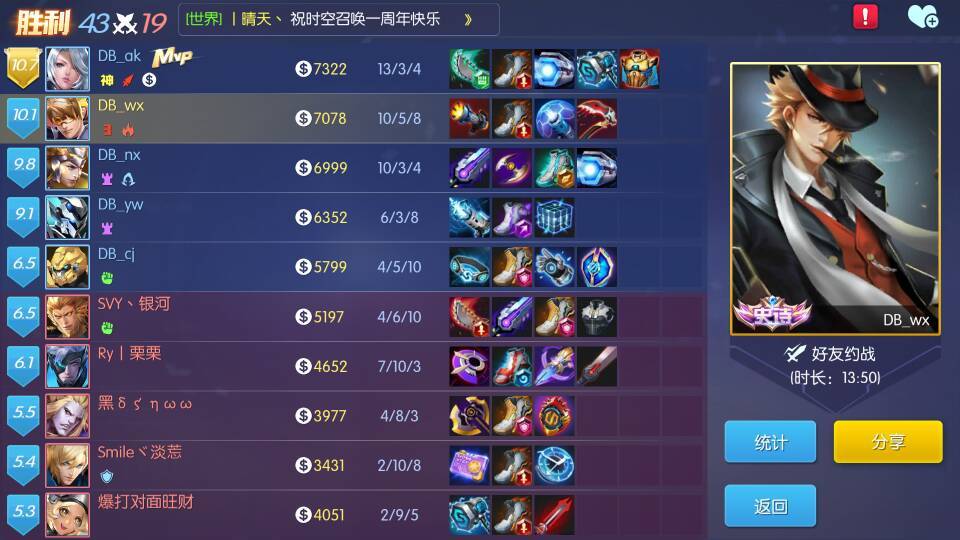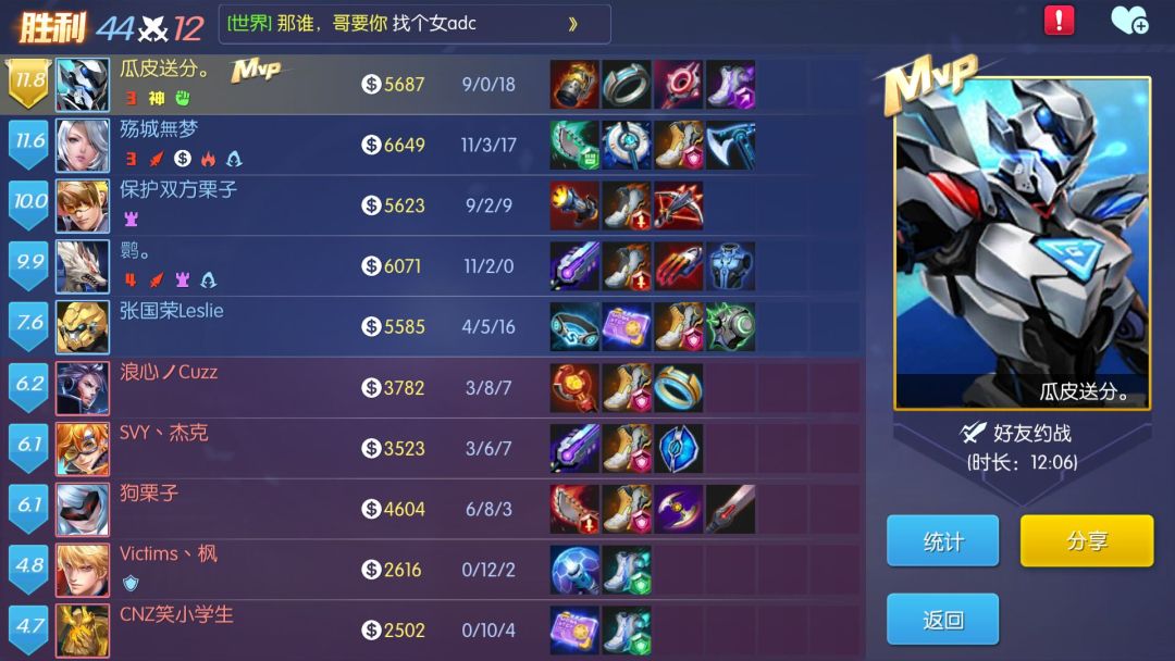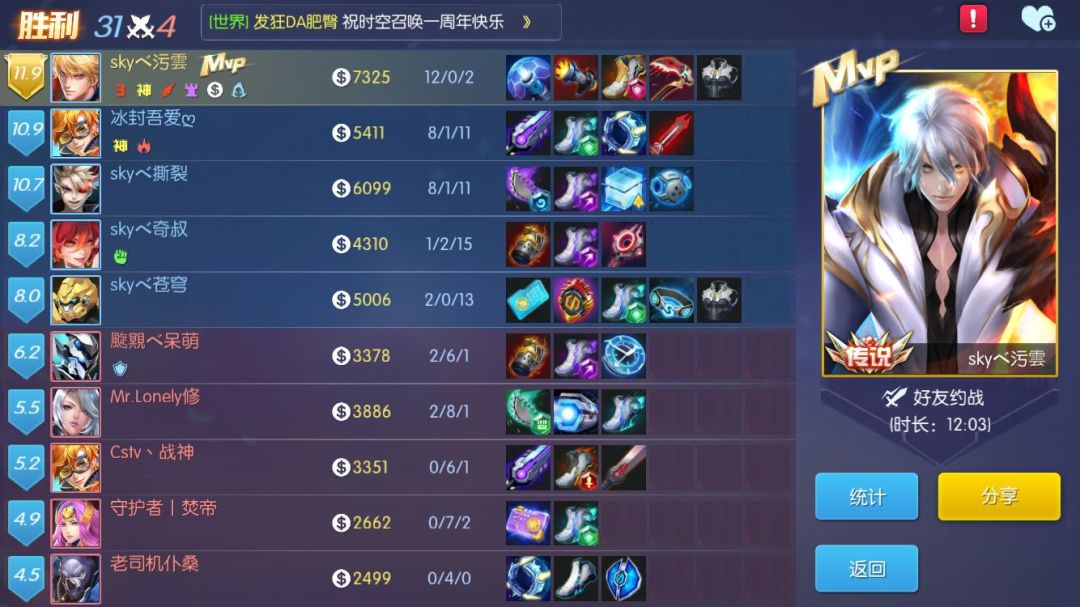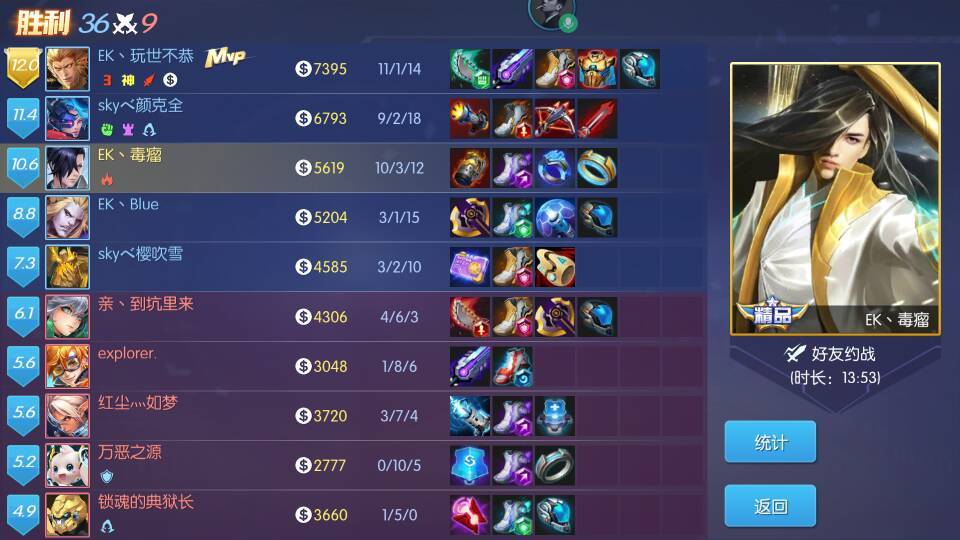 SKY T2(胜方) VS 散人队伍16(败方) 比赛详情: