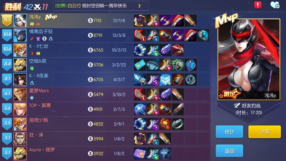 菜鸟战队 VS(胜方) 散人队伍20(败方) 比赛详情: