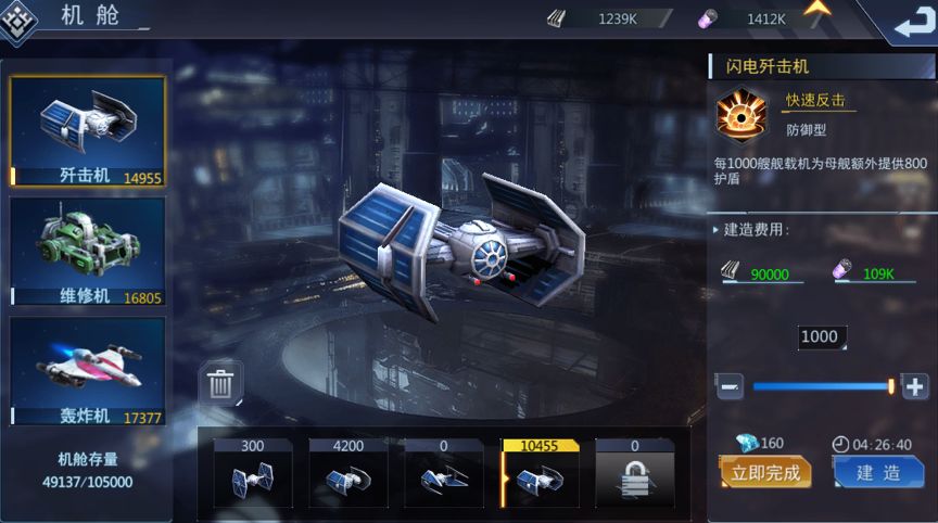 您在机舱可建造舰载机,舰载机是舰队进行战斗的必要消耗资源;