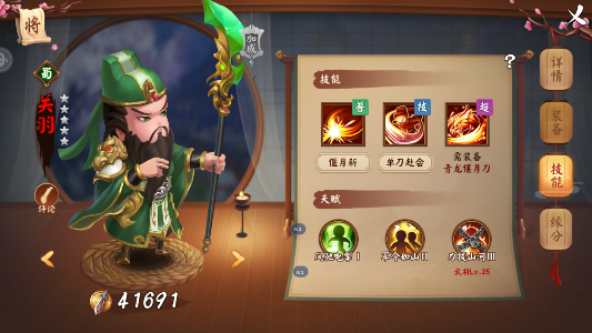 技能:偃月斩、单刀赴会、横扫千军(需要装备青龙偃月刀)