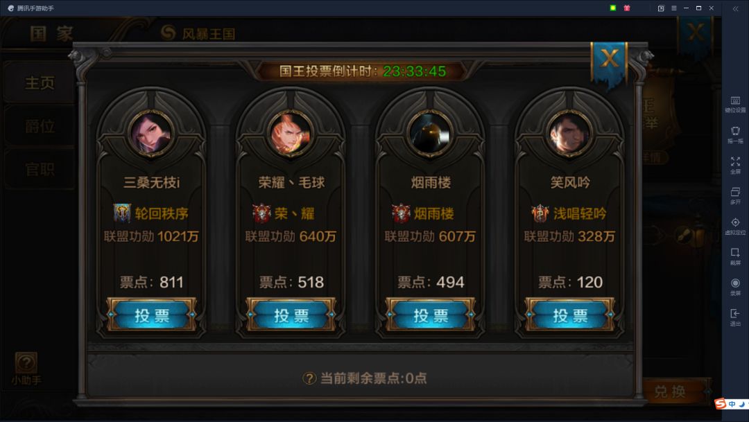 国王并不一定是联盟功勋最高的盟主,但绝对是票点最高的盟主。当然你功勋高,别人投你的几率就越大。你也可以和其他玩家保持良好的关系让其他玩家来为你投票。