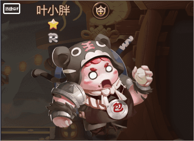 该动作为小胖的战斗动作。大家都知道小胖的生活技能是个厨师,到哪儿都要背个平底锅,这可是他吃饭的家伙呢。