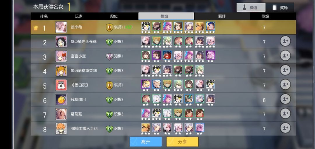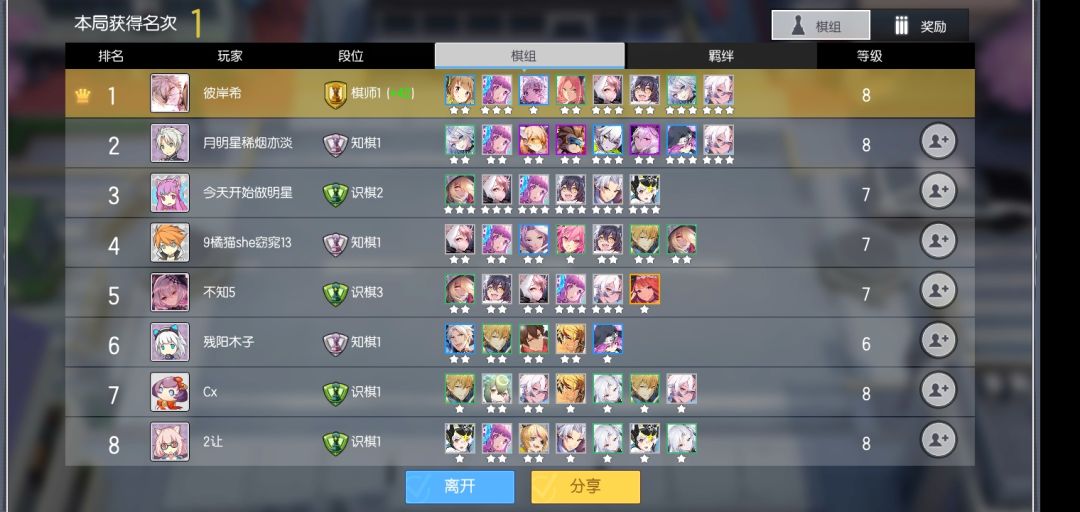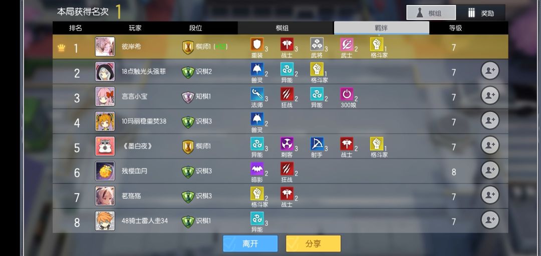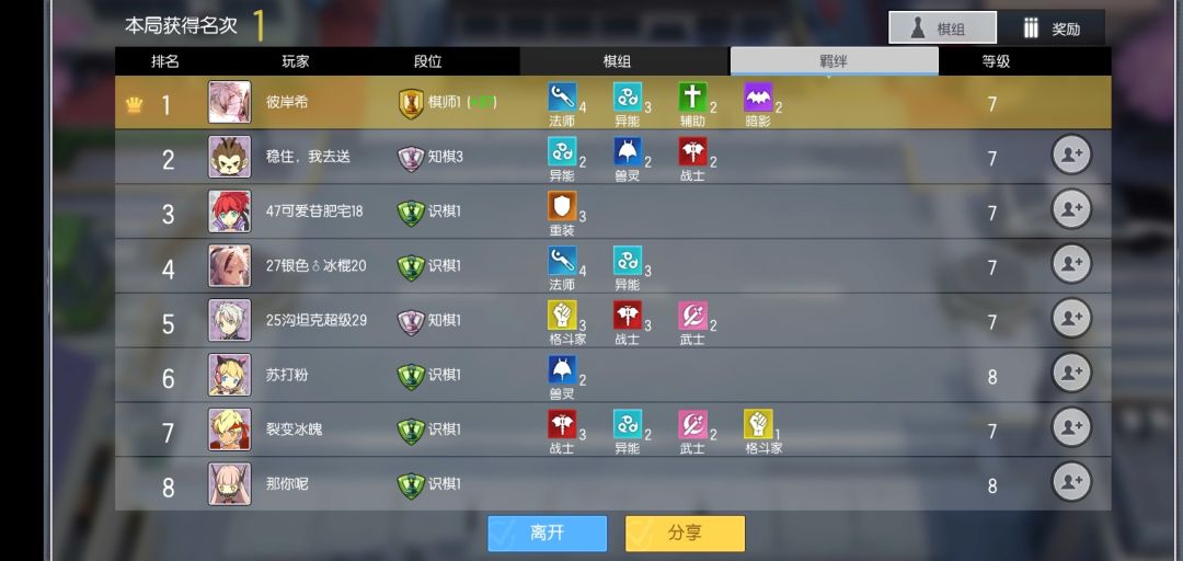1人物,哈利,卡娅,克拉拉,无名,886,特蕾莎,羊,总体看起来没有高阶的而且正好适合8人口,但是缺陷很明显,蓝卡太多了,一般我们养羁绊都是凑着来的暗影当然也这样。