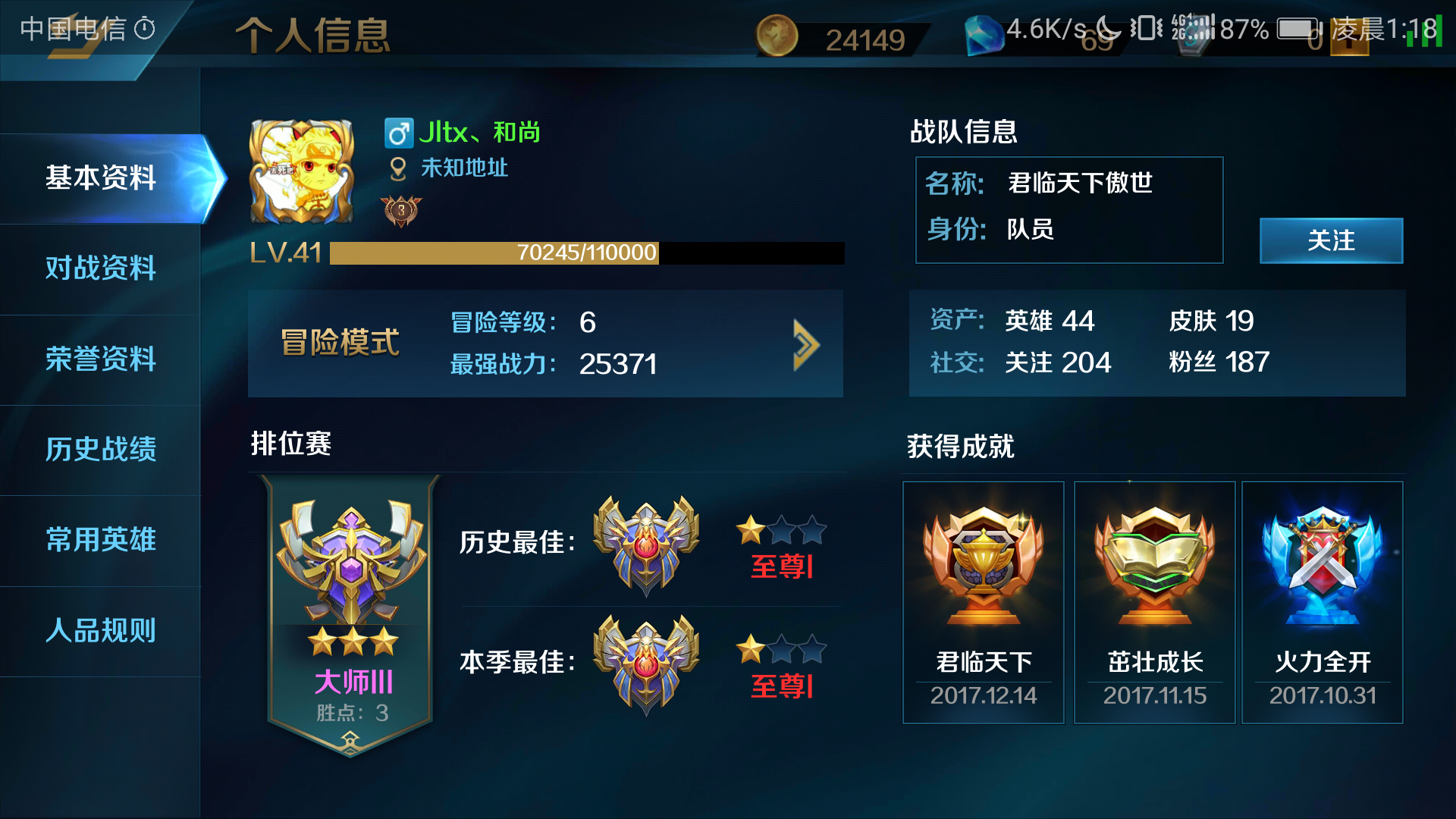 根本带不动,这游戏高分段水平差太大,大师一和大师二一个层次,大师三和至尊一至尊二1个层次,至尊三单独一个层次,高层次的玩自己拿手英雄都可以血虐低层次。匹到渣队友,对面又不渣基本稳输的。顺便一说我玩吸血鬼那把没挂机还被举报,还扣了人品我只能呵呵了,没去打排位,段位低了队友都菜飞,逼的我不得不打排位,最后补充一下上面说的层次是大层次不是小层次,各个层次和各个层次之间水平差太大了。
