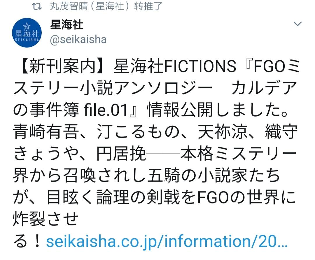【新刊案内】星海社FICTIONS『FGOミステリー小説アンソロジー カルデアの事件簿 file.01』情報公開しました.
