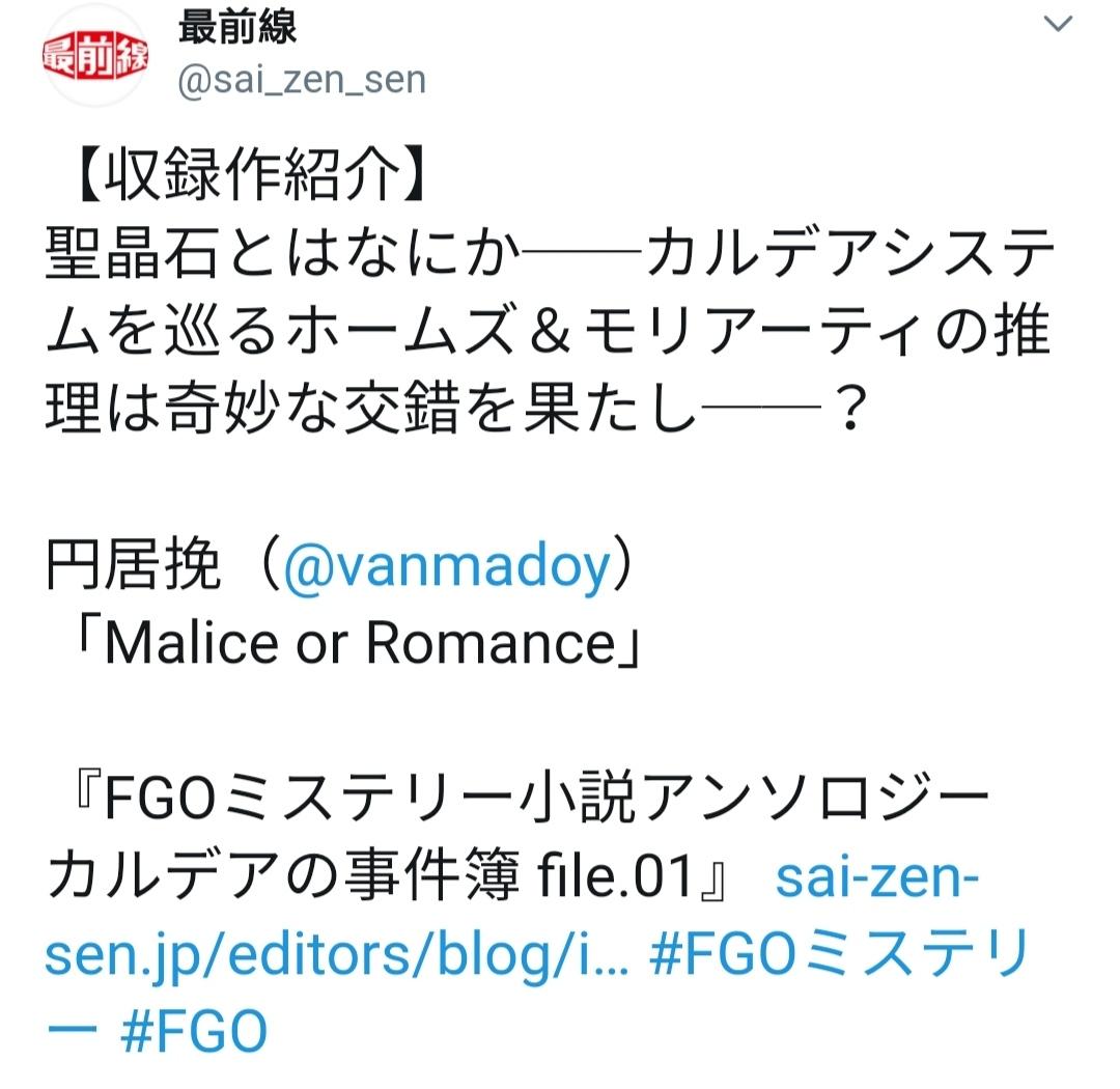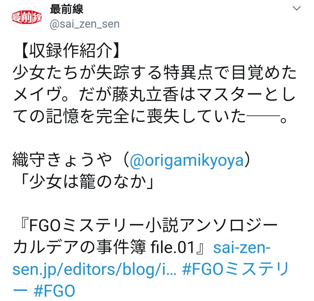 『FGOミステリー小説アンソロジー カルデアの事件簿 file.01』插画:しまどりる @simadoriru