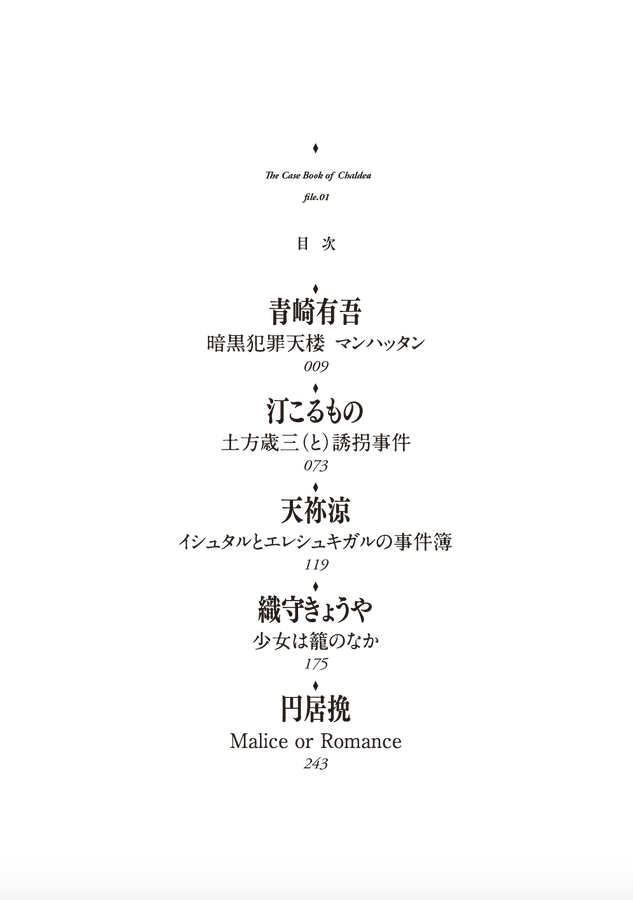 青崎有吾、汀こるもの、天祢涼、織守きょうや、円居挽──本格ミステリー界から召喚されし五騎の小説家たちが、目眩く論理の剣戟をFGOの世界に炸裂させる!