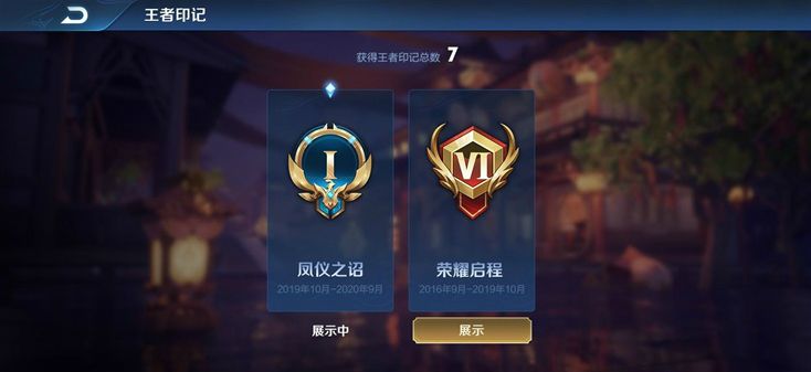 召唤师们可通过个人主页的王者印记ICON进入到专属界面,选择对应年度主题下的印记进行查看或在个人主页及大厅进行展示。