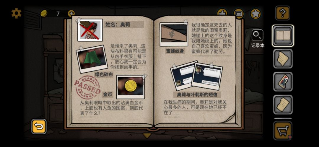 我打了两遍,第一次仔细地摸了各种边边角角,连杰西卡的线索和罪证都集齐了,居然是因为差一个奥莉的线索被渣男杀死,意难平啊!!