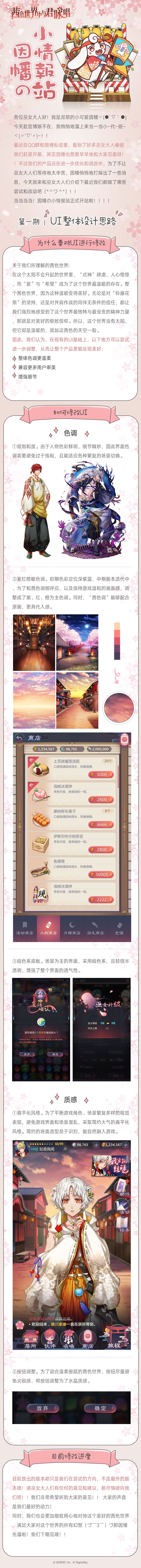 最近在QQ群和微博私信里,看到了好多巫女大人催促我们赶紧开服,其实因幡也想要早早地和大家见面呀!!不过我们的产品还在进一步优化和调改中为了不让巫女大人们等待地太辛苦,因幡悄悄地打探出了一些消息,今天就来和巫女大人们介绍下最近我们都做了哪些尝试和改动吧!!