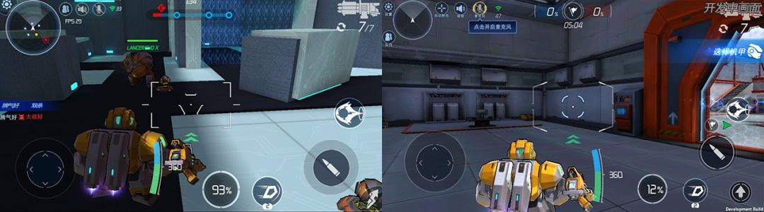 左:调整前战斗中机甲大小 右:调整后战斗中机甲大小