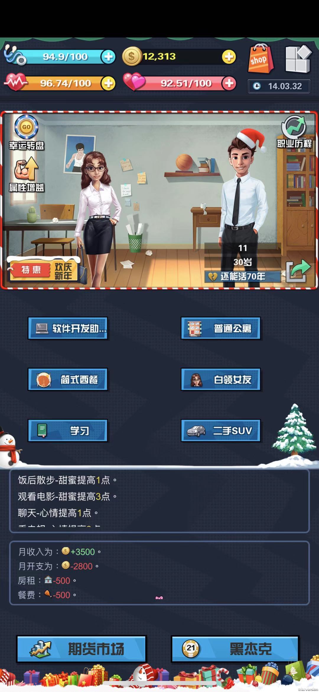 解答:破产的同学不在少数,其实这正是游戏所需要挑战的地方。很多玩的童鞋有钱就高歌激进,不管下一份职业的【需求条件】是需要的还是不需要的反正只要看见“接受”按钮是亮的就点了。结果随着时光飞逝,入不敷出。