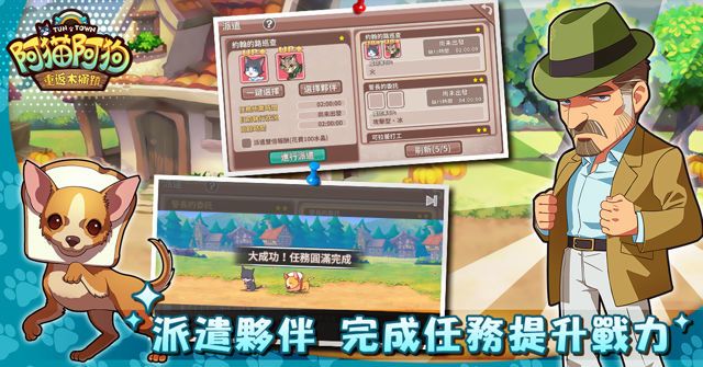 此外,蒐集装备的方式也全面改为「派遣任务」模式,玩家们需要派遣宠物完成各式各样的任务,每项任务需要的猫狗特质不一,玩家必须依照条件派出适合的宠物。宠物在派遣过程中可获得经验值奖励,派遣结果是大成功与超大成功则能获得装备。为了提升大成功与超大成功的机率,切记要派出符合该任务要求条件的猫狗,不然可是会无功而返的!