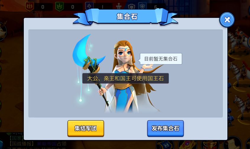 作为权力顶端的国王、大公、亲王可以使用国王石号令本国成员迅速集合攻打目标城池;公会会长也能够迅速集结公会成员于目标城池。而如何能让本国众多的成员听从指挥号令相当考验指挥者的能力。此外,对于实力与权力都强盛的领主来说,如何在正确的时机地点集结军团相当重要。一定要确定哪些战力的去召集城池,哪些战力的不要去。攻击方是不需要炮灰的,而防守则可全体接受召集转移。一次成功的集结或许便能够迅速占据关键要塞,树立长久的优势。