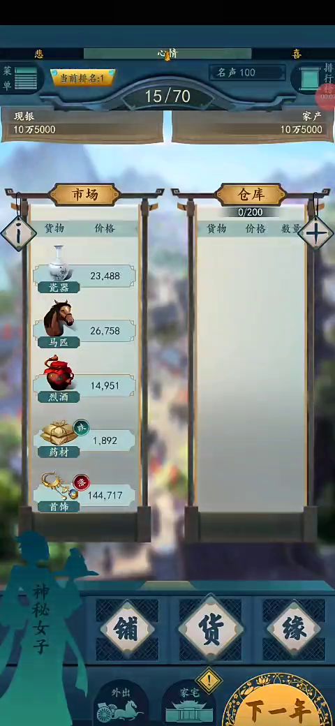 简单的不能再简单,几乎不需要操作总体思路就是让声望尽快破千,用事件的钱来进行货物买卖,你就是瞎玩他都百亿千亿