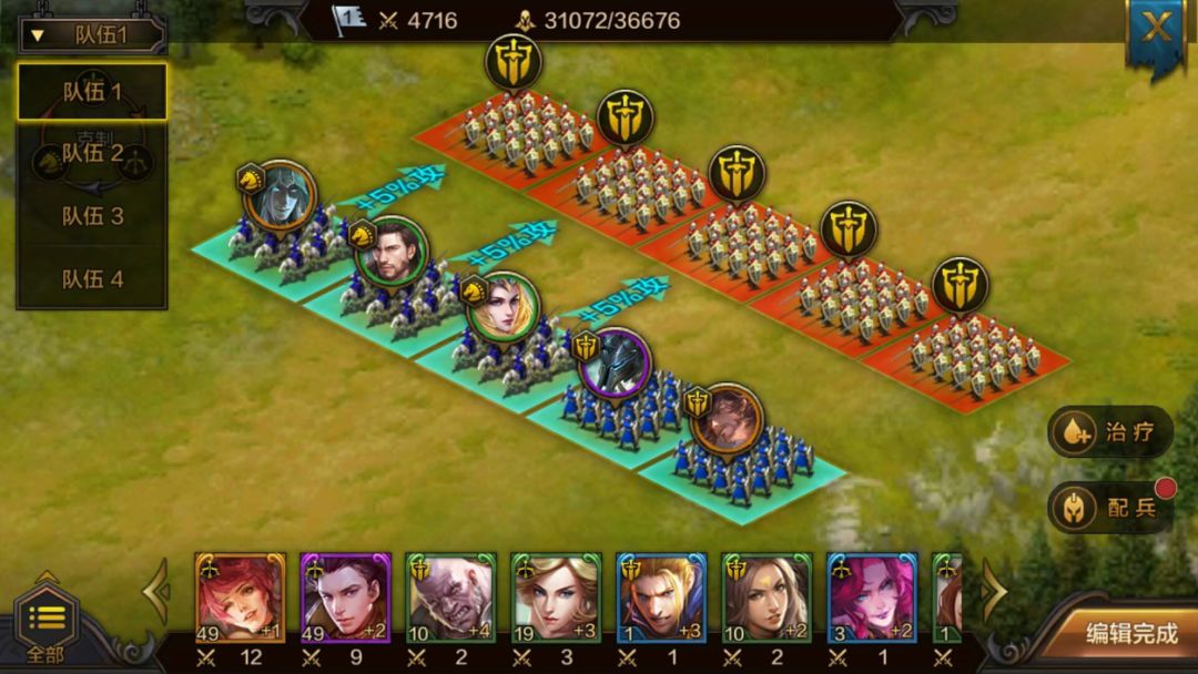 而且补兵很重要,每一路单靠主要英雄是不行的,需要有大量兵力的辅助配合,抵挡一部分伤害,所以我们在经过每关关的消耗之后,一定要记住及时补兵和治疗。