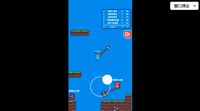 这款游戏的操作手感很像当年红极一时的《掘地求升》,而这次的目标并非攀岩,而是击败场上的对手,成为抡大锤第一名。当然,对战的同时别忘观察地形,可不要一不小心就跌落悬崖哟!