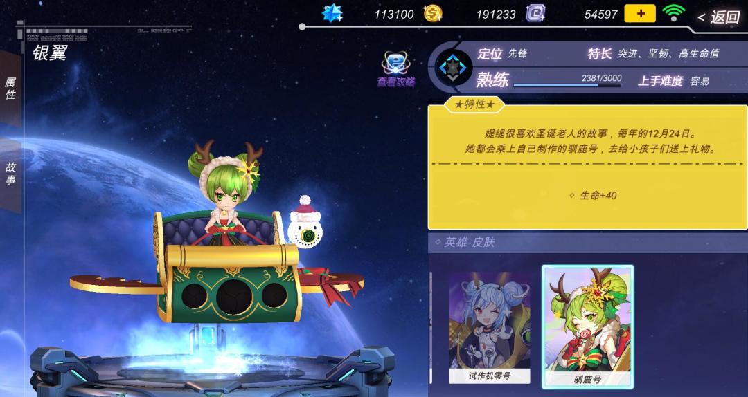 商城在服务器维护之后,直至下次版本更新之前,限时售卖银翼圣诞特殊皮肤“驯鹿号”,售价为688点券。