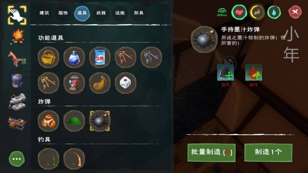 迷之墨汁配合炸弹果可以做出新道具:手持墨汁炸弹 击晕飞龙必不可少的工具(炸弹果可砍炸弹树捡取)