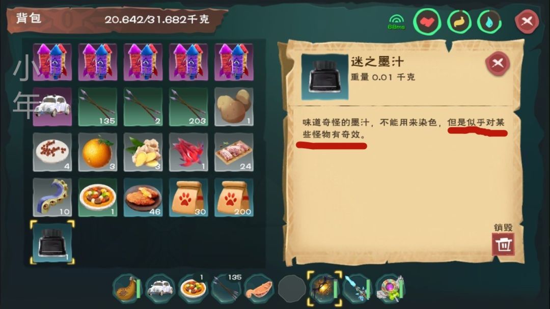 下面就是重点了,打开墨汁看介绍!(机智的楼主就是捡到迷之墨汁找到了击晕飞龙的办法)