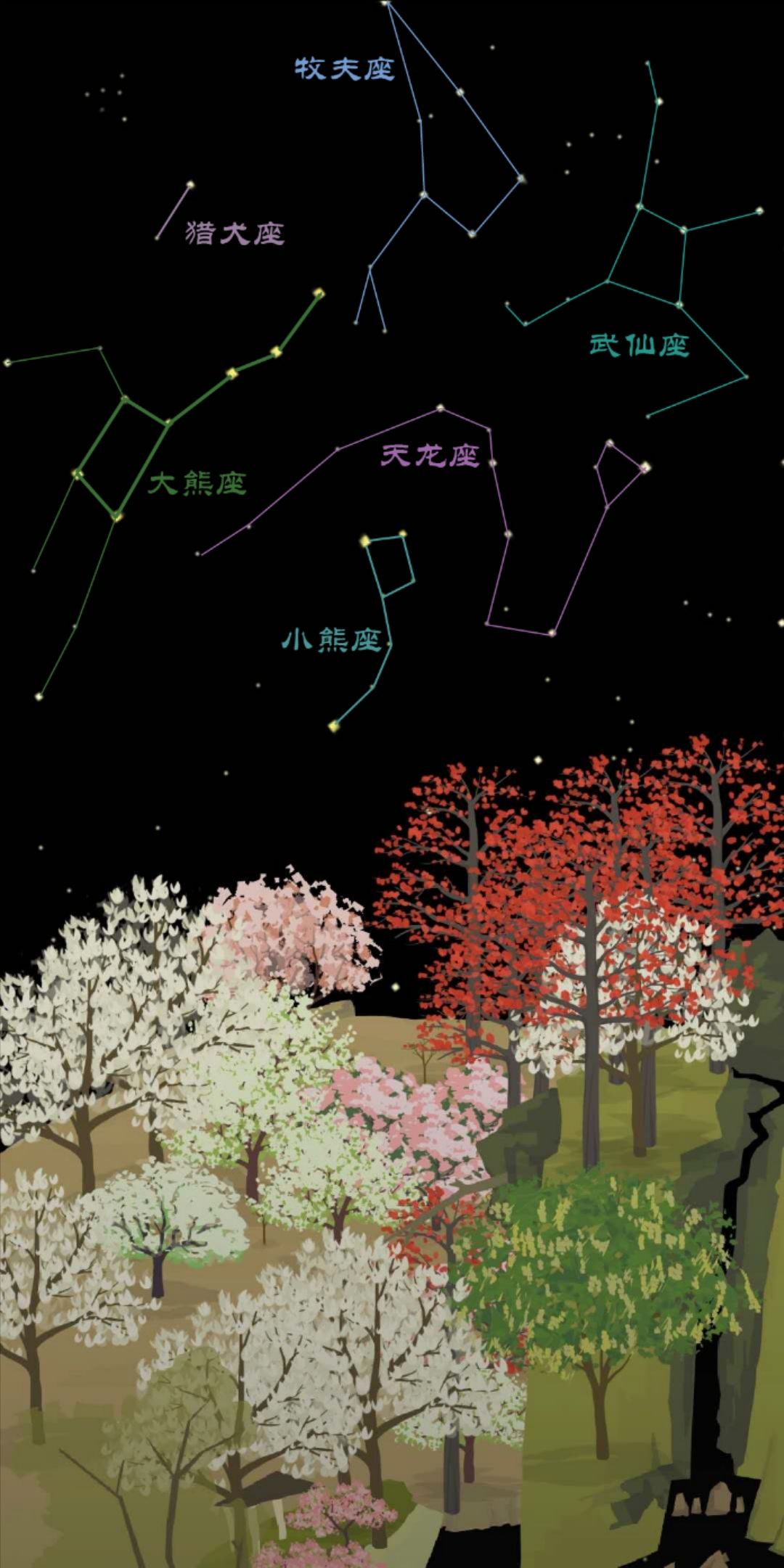 大熊座,小熊座,牧夫座,猎犬座,武仙座,天龙座