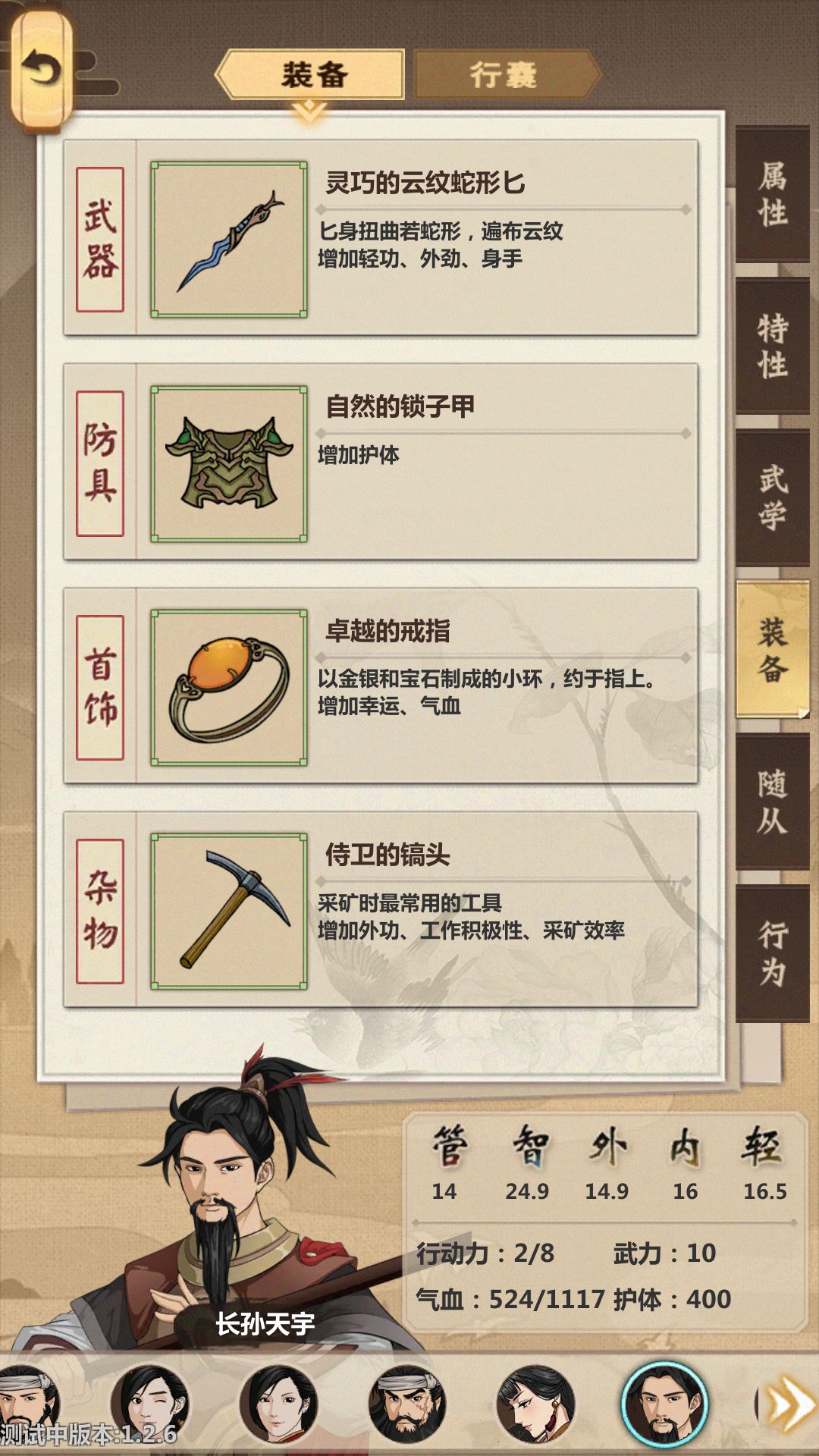 以下为战前准备文昌男主,武力较低新手武功,护体类装备,利用弹跳走位惊险杀boss早日获取武功,早日获取100声望