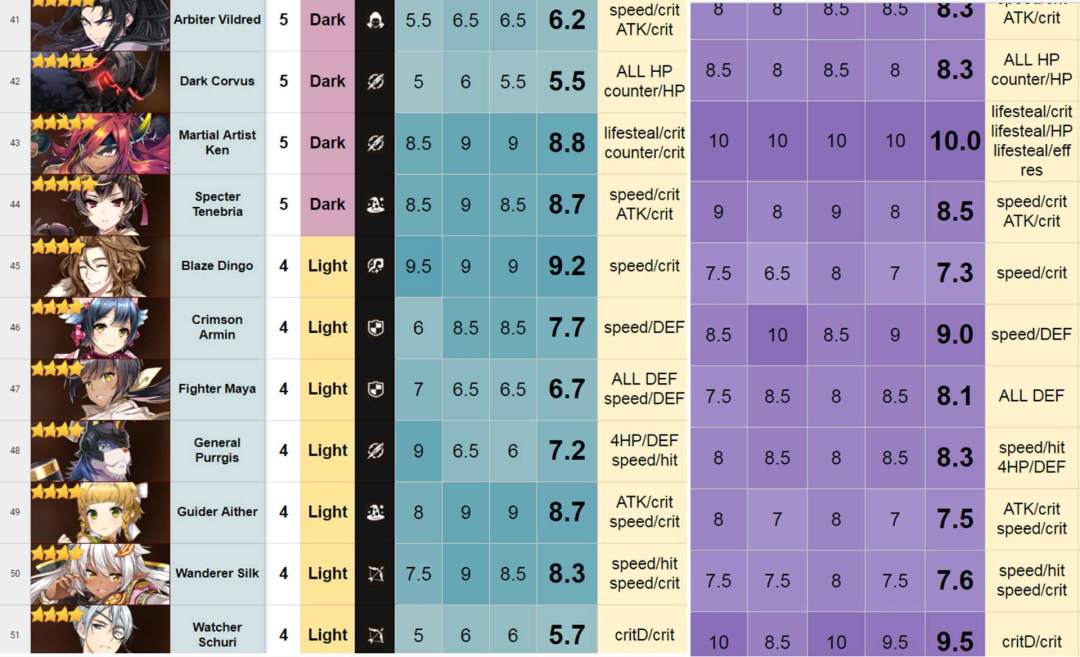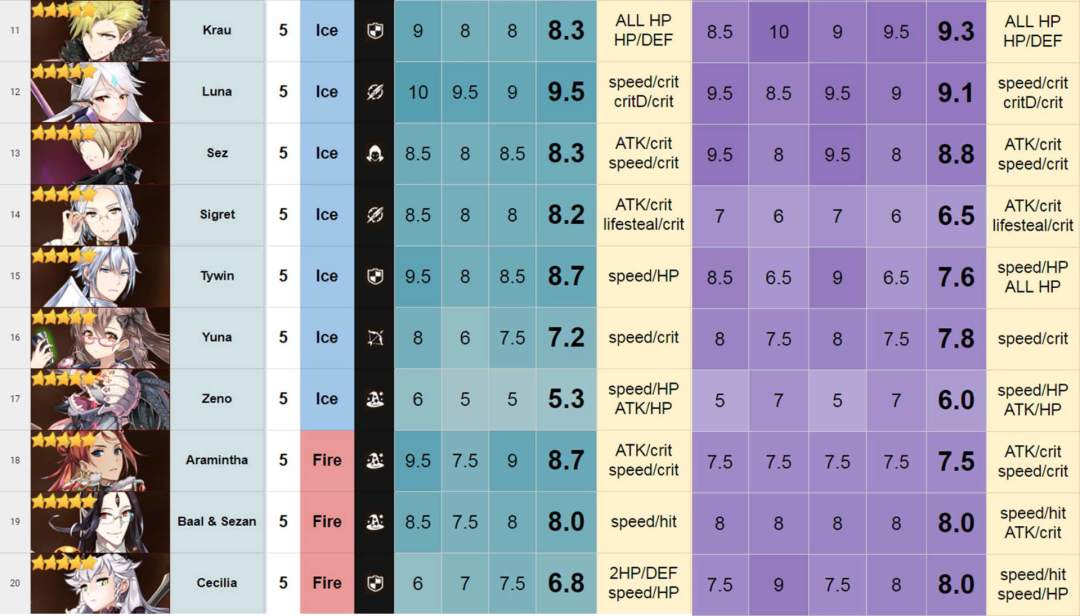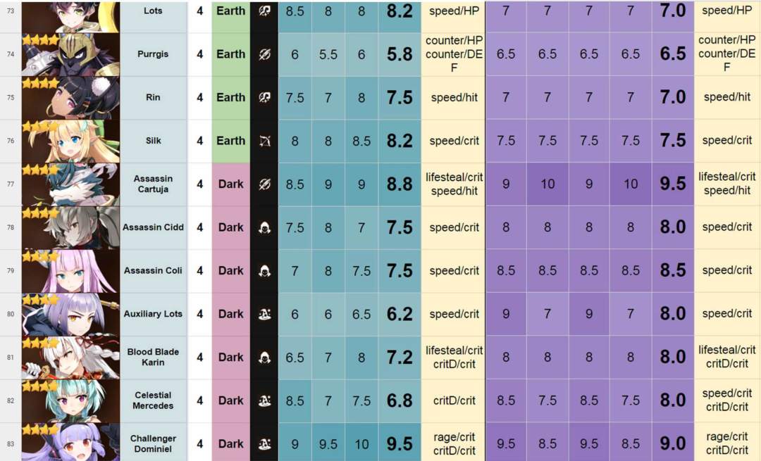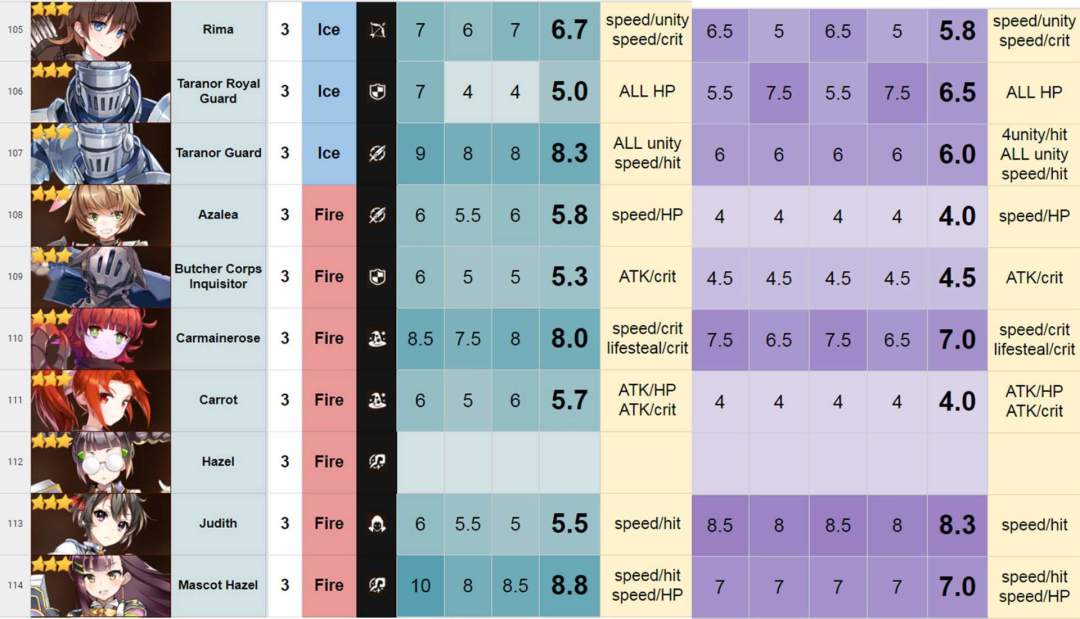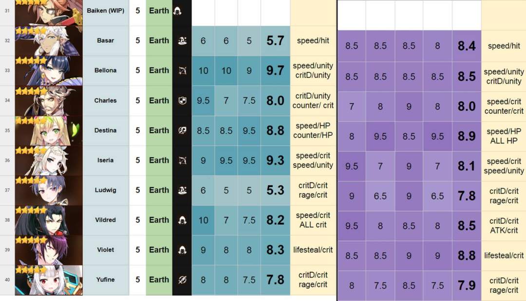评分表搬自——巴哈,由国外大神团队制作。