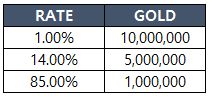 *某些任务通行证中奖励含有金币幸运箱子,各个金币量的获取概率如下: