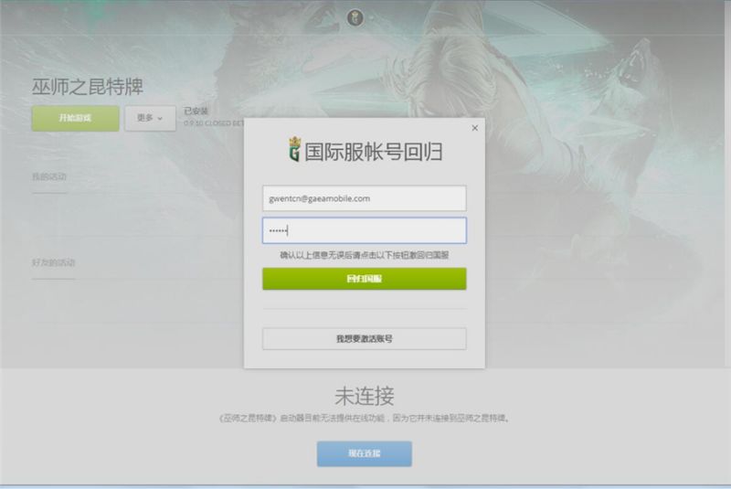 如果您注册的盖娅通行证邮箱和您的国际服邮箱一致,则直接输入您的国际服密码便可以一步完成回归。