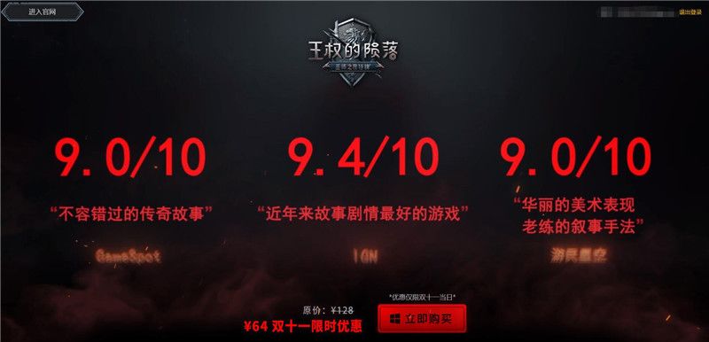 《巫师之昆特牌》国服单人战役模式《王权的陨落》在双十一当日限时促销,只售64元!除此折扣福利外,在完成购买后,您的国服《巫师之昆特牌》帐号还将额外获得丰厚的国服独占奖励【点击此处前往购买】。