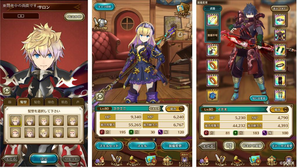 官方邀請到曾製作過《神奇寶貝 X/Y(ポケットモンスター X/Y)》、《任天堂明星大亂鬥 X(大乱闘スマッシュブラザーズ X)》等知名遊戲配樂的作曲家景山將太製作遊戲主旋律。此外,官方也公開遊戲內「創角」及「角色房間」的畫面,玩家可以為角色選擇喜歡的樣貌及聲音,搭配從尋寶獲得的裝備來加強外觀或能力值,創造出心目中的角色。