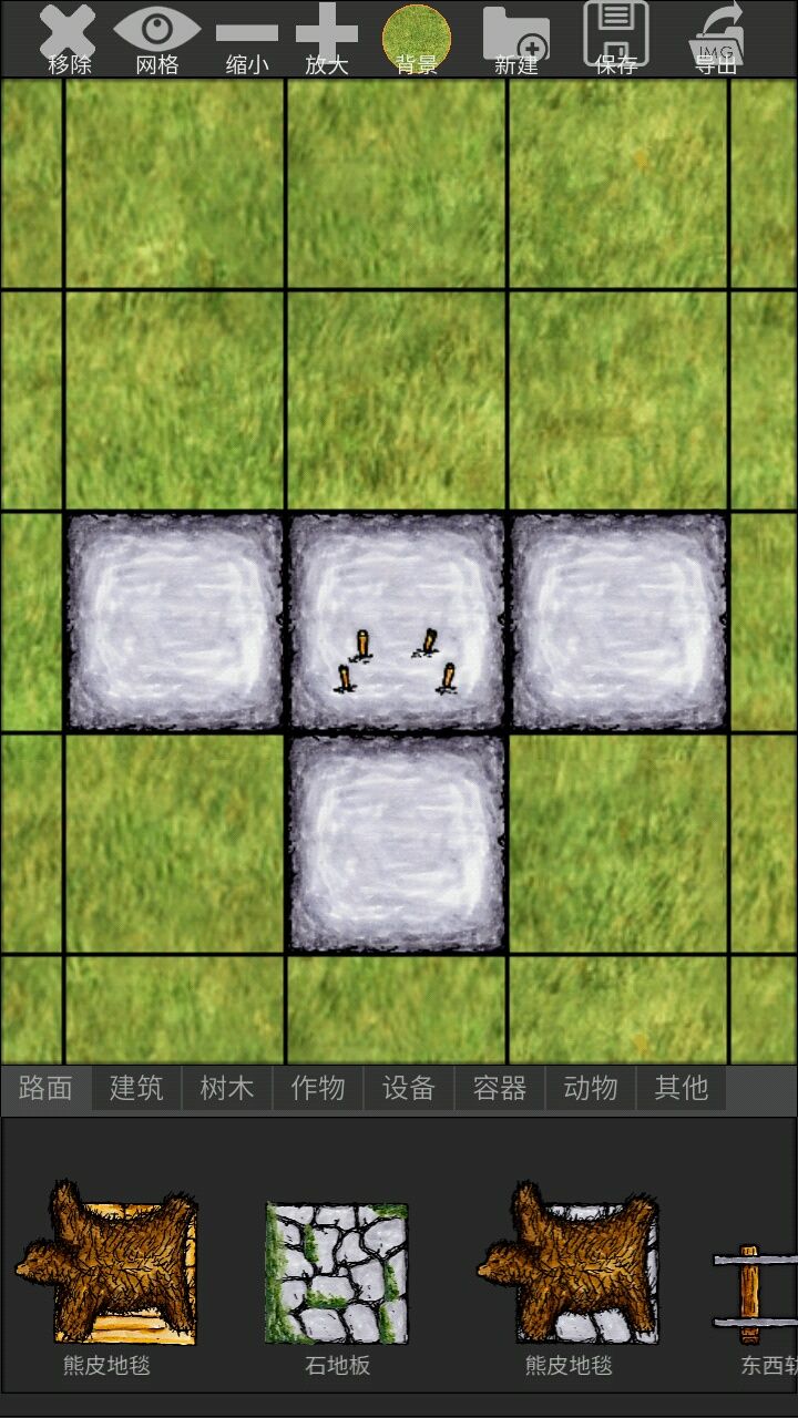 不用移动,人物站在中间能方便互交的格子就这四个,至于上面的格子会误触到人物本身和兔包。而人脚下的地方用不了,得放东西避免被熊咬,所以这三个格子可以分别是熊洞、马车、用箱子装的三只箭和燧石。