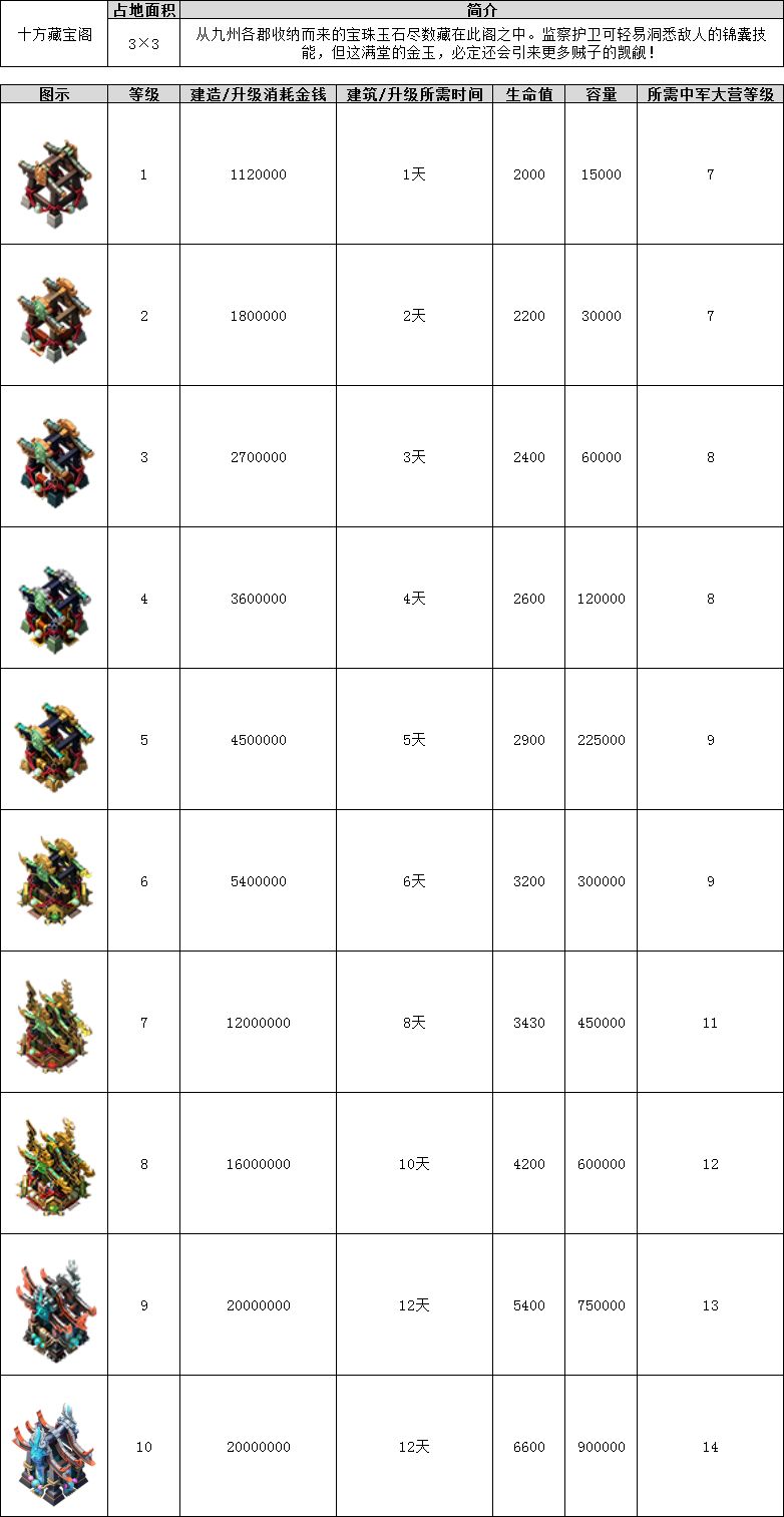 目录:农田、粮仓、集市、金库、九耀宝石坊、十方藏宝阁