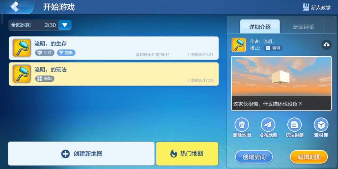 如图 我到游戏房间里找了一会 发现有不少空岛生存 然后进去发现真的是空岛 生存在哪里……