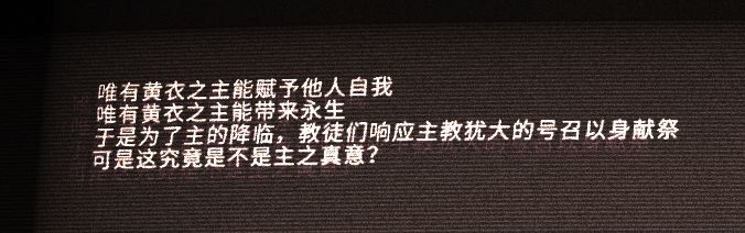 在人海中寻找神选之子很明显不可能了,而且自己也时日无多说明他并不是渴望着永生,只是害怕自己在未找到神选之子前就被重病拖垮。他找神选之子为了什么?犹大寻找神选之子就是希望能够召唤出黄衣之王。而且他早就将自己的身心都奉献给了黄衣之王。找不到,那我就创造一个。他在当上教皇后对教徒们所宣称的也正是如此。也就是说,弥城是教团成员记忆数据化后所放入的虚拟城市。而我们的主角“艾希”则是系统所生成的神选之子。而这些,就是整个游戏开始的背景。