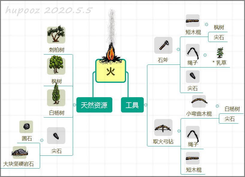合适的环境很重要!先找到一棵“刺柏树”(得到火种)~~附近也要有枫树等等能手摘叶子的树(得到叶子)。