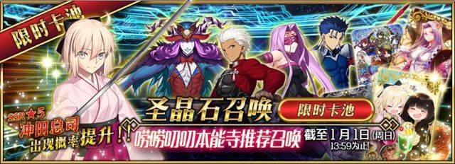 ※本次推荐召唤卡池结束后,冲田总司将不会加入剧情卡池。