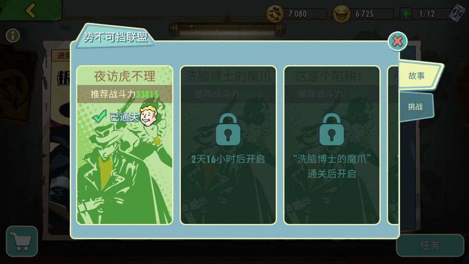 银衣怪客和神秘女士副本里又细分为故事,自由,挑战,里面有相对应副本。